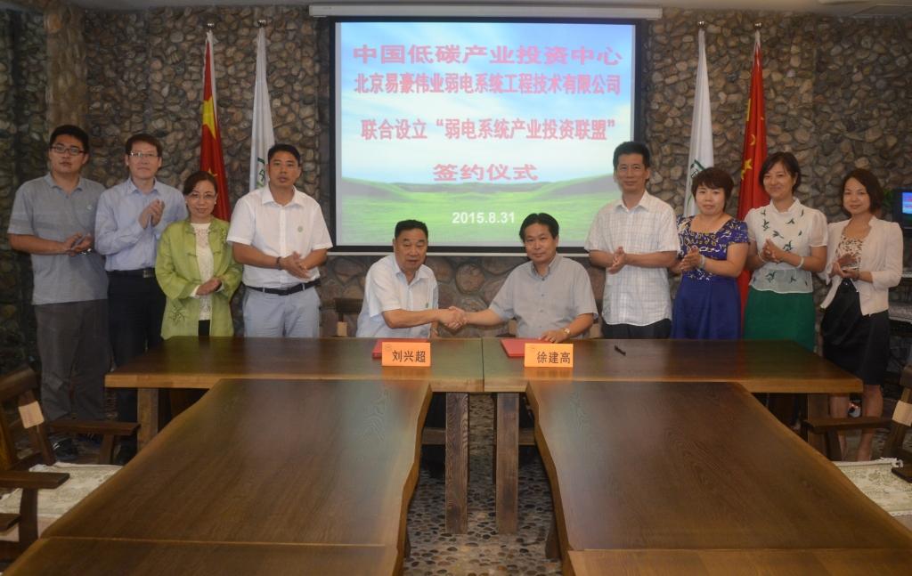 2015年8月31日,北京易豪偉業(yè)弱電系統(tǒng)工程技術(shù)有限公司與與中國低碳產(chǎn)業(yè)投資中心聯(lián)合設(shè)立“弱電系統(tǒng)產(chǎn)業(yè)投資聯(lián)盟”,將充分發(fā)揮資源優(yōu)勢互補的大好局面,為中心在全國布局的【低碳智慧新城、低碳產(chǎn)業(yè)示范園、中華民族文化城】等項目建設(shè)提供強(qiáng)有力的技術(shù)支撐及產(chǎn)品保障,為實現(xiàn)“低碳中國、綠色家園”貢獻(xiàn)一份力量!