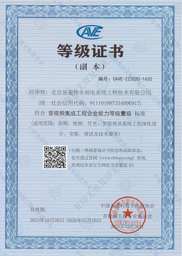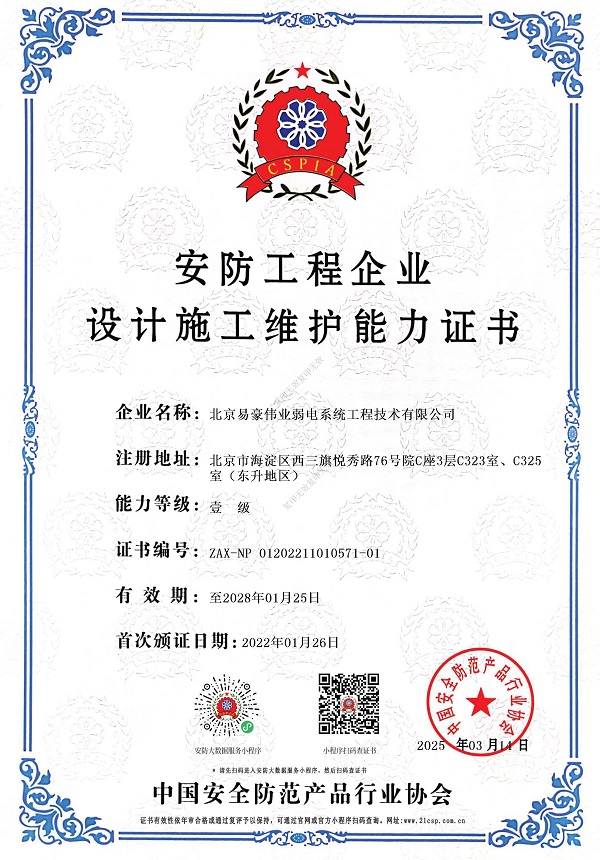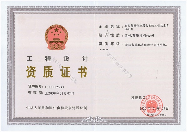 電子與智能化工程專業(yè)承包壹級、建筑工程施工總承包貳級、建筑裝修裝飾工程專業(yè)承包貳級、